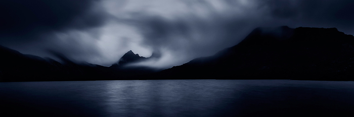 In one of the photos featured here, ‘Neverland’, I wanted to convey a dark sinister mood. The spectral shaped cloud appears to be rising up from the lake. I had originally shot this with a more extensive foreground but eventually decided that grounding the viewer took away some of that mystery. I worked on the contrast in the lake instead to bring up the vague reflections of the cloud instead and cropped off the bottom half of the original image.