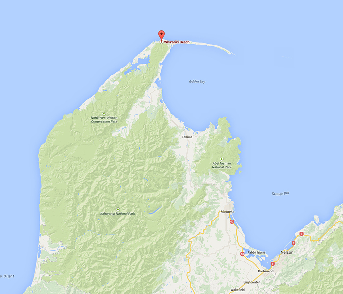 No doubt, Golden Bay should be viewed as one of the most remote coast areas in New Zealand. It is a shallow and paraboloid shaped bay at the northwest end of the South Island. As showed on the map (Photo 13), touching the Tasman Sea, the bay is protected in the north by Farewell Spit, a 26 km long arm of fine golden sand that is the country's longest sandspit. Its southeast is adjacent to the famous Abel Tasman National Park.