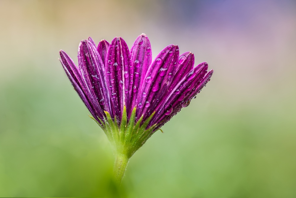Judging by the title "Beauty in drench", I did expect something different than a beautifully recorded flower with droplets. I imagined a soaked brave little flower standing “in drench” out in the rain. The lovely smooth background of the photo however doesn't suggest it is raining, nor do the scattered droplets on the flower petals.