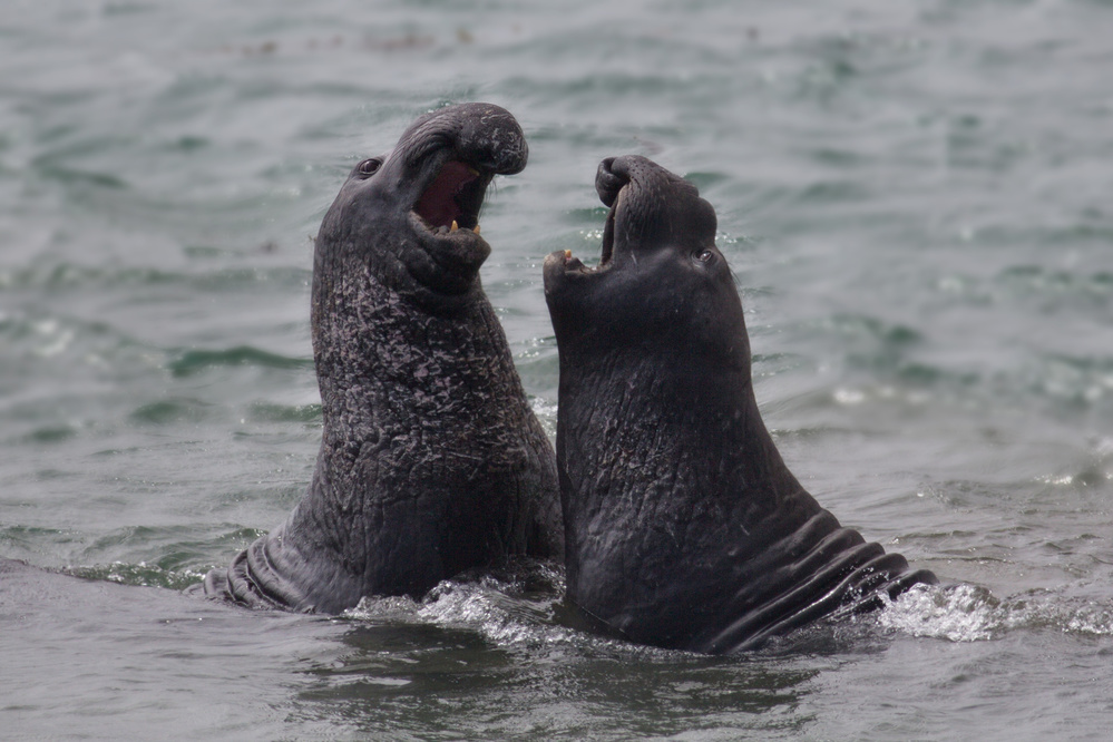 When I saw the photo of these two elephant seals I immediately asked myself from which opera they were singing an aria. There is so much drama in their body language! It seems, there could be also love in the air. Or does the photo show something more down to earth, or better water in thid case? Are they settling a dispute over their territory?