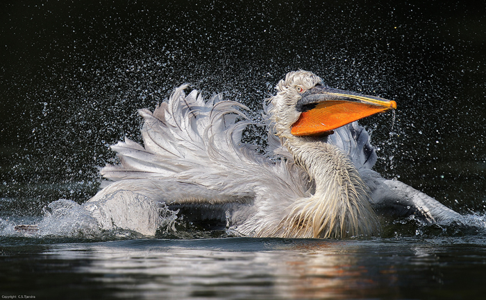 The Indonesian photographer C.S. Tjandra made a beautiful series of a bathing pelican. From it I choose "Wet"