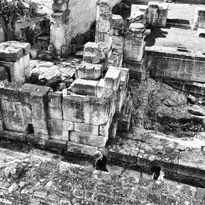 This was taken from atop the amphitheater in Arles, France. I simply waited for someone to walk into the scene and shot it.
