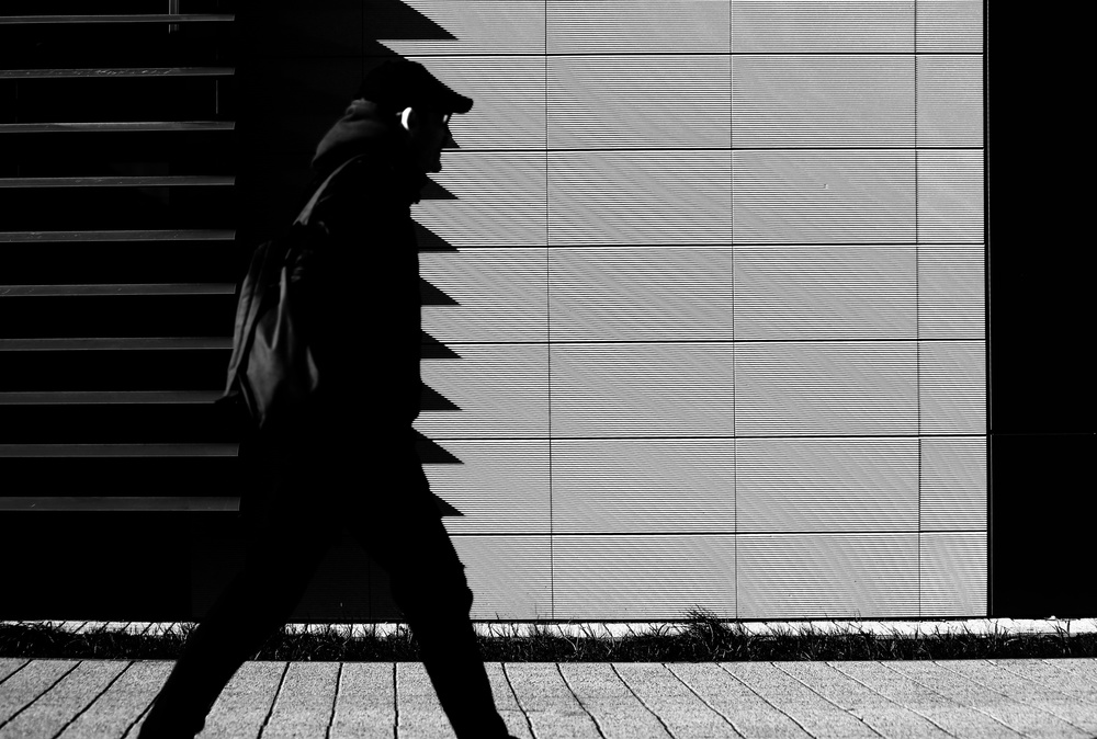 When a man appears in the picture, the entire photo gets a different meaning. A story came to life. The man I see in my lens is a part of the cityscape. He's combined in lines of the geometry and city structures. It's just a fraction of a second – figure on the street, his shadow on the wall, a running man’s leg, and reflection in the window. That second is not a definite record – captured in frame it gets its own life. The man keeps going – I have a trace of a story that never happened, but came to existence in the viewer’s head.