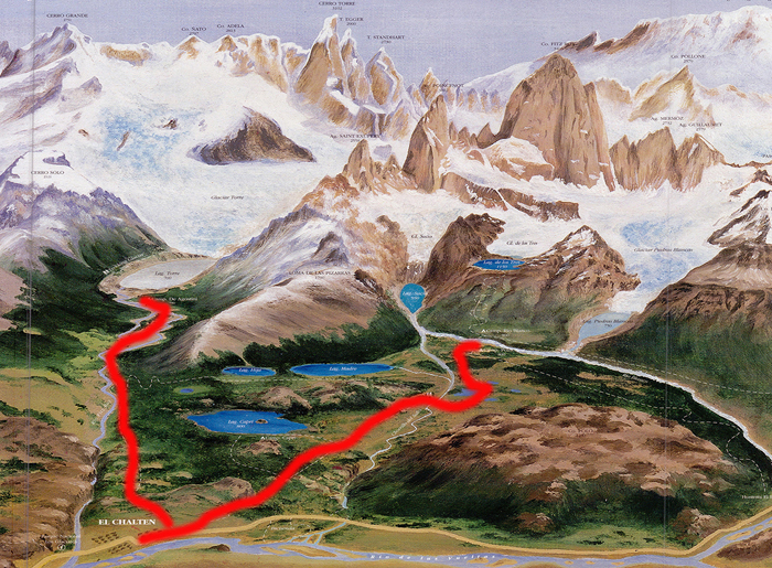 Before embarking on my trip, I purchased a topographic map of the park and spent considerable time carefully studying it. Once arriving in El Chalten, I also obtained a copy of the park’s survey map from the hostel, which provides supplementary yet useful information of the whole park.