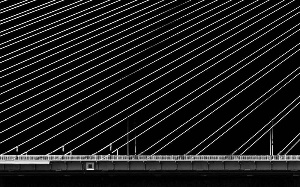 I was more than satisfied with the final result, as it was much better than I had originally visualized. The fragment of the deck and cables extend without obstacles to an imaginary point, thus giving the best possible impression of the magnitude of this architectural masterpiece. Another set of the small vertical columns on the left may have resulted in a more balanced composition.