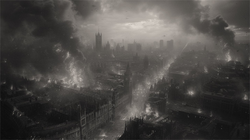 "The bombing of London on September 7, 1940 (I)". Generated on Midjourney, by Yan Zhang.
