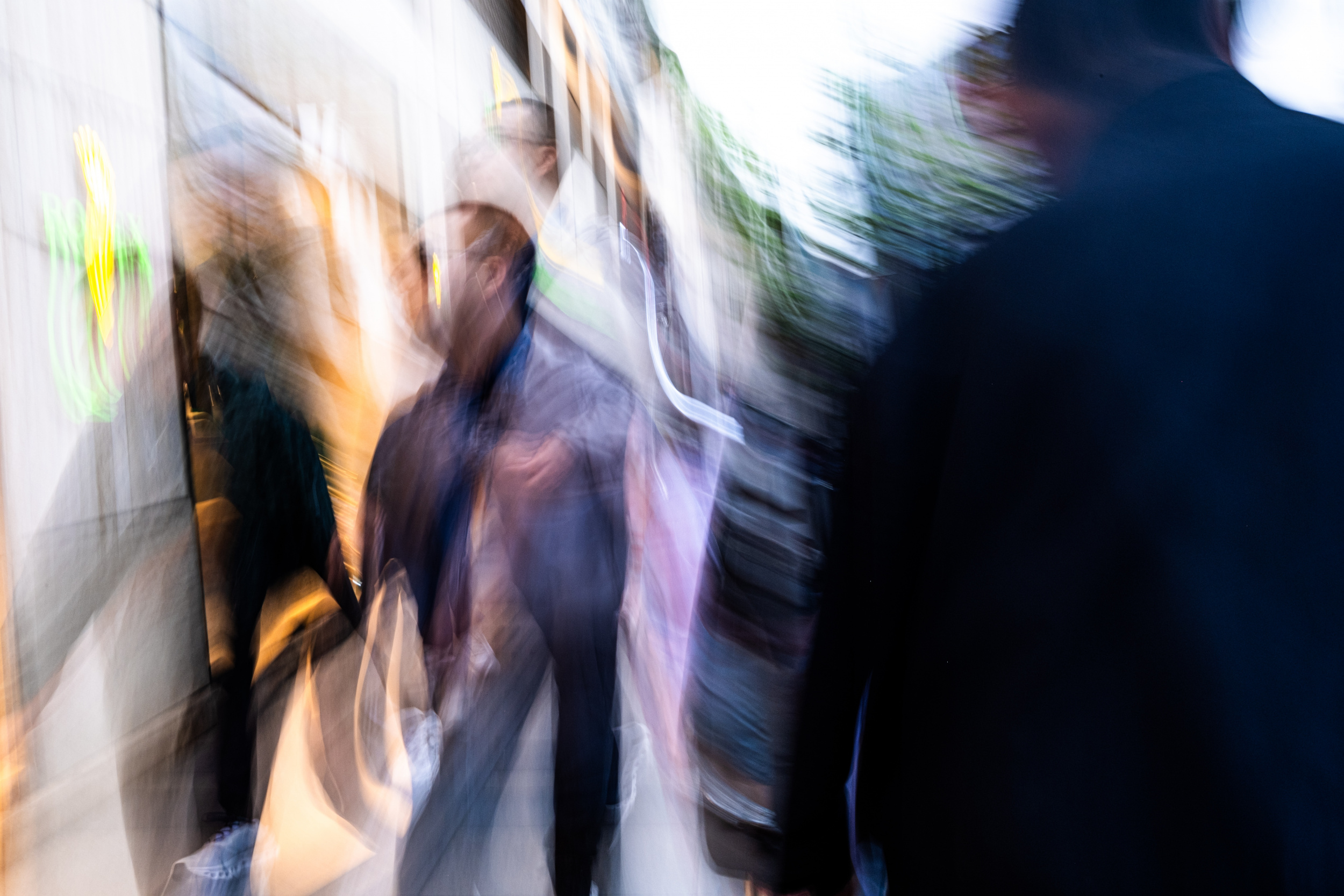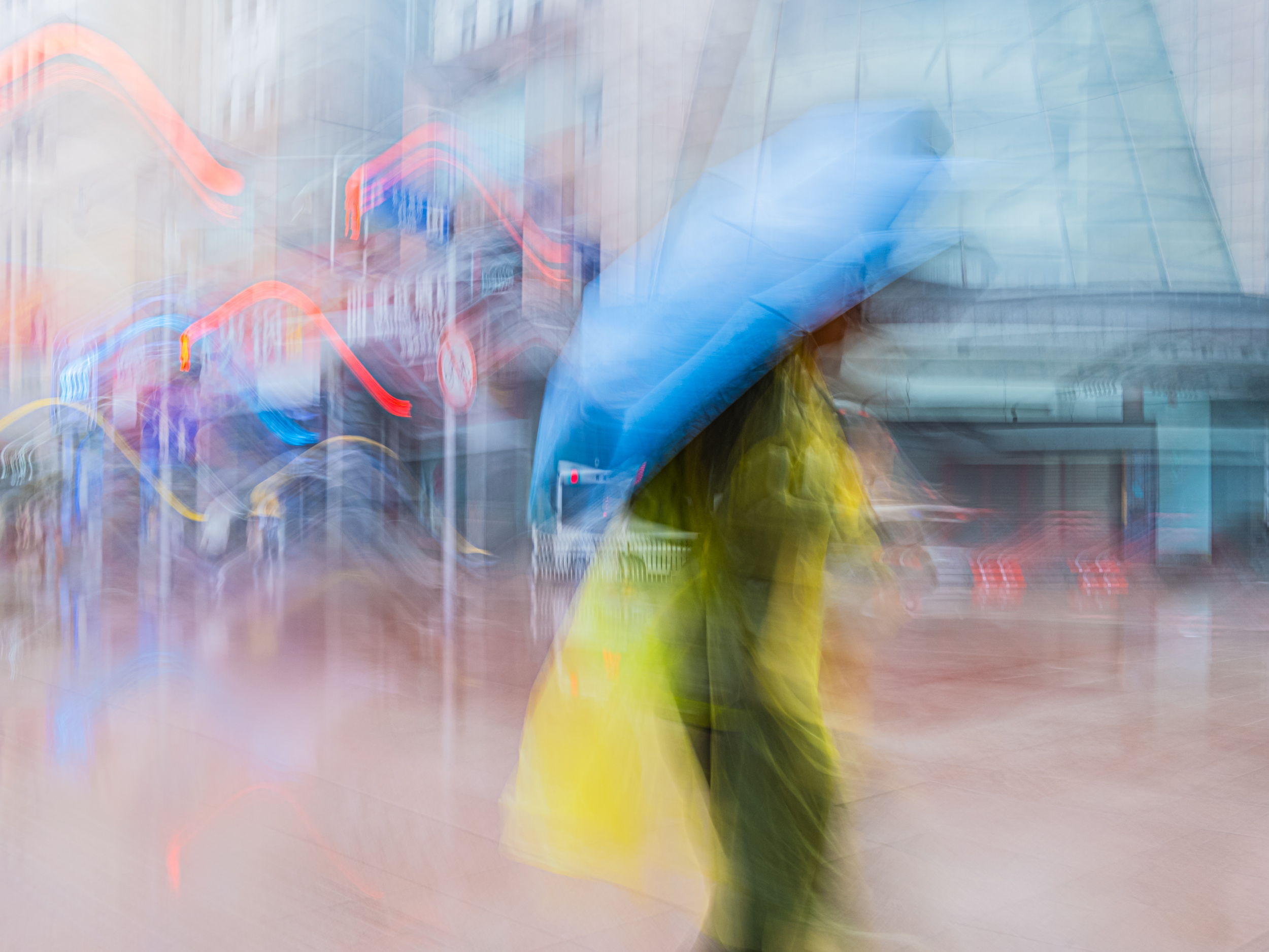 Searching for a way to translate this into my street photography, I came across the technique of Intentional Camera Movement (ICM). I decided to experiment with ICM, and what I found was an authentic way to capture the essence of Shanghai's streets - a representation that reflects what I actually experience when I walk through them. The images are not about sharp details or recognisable faces, but about shapes, colours and fleeting moments of light - distilled fragments of a sensory experience.