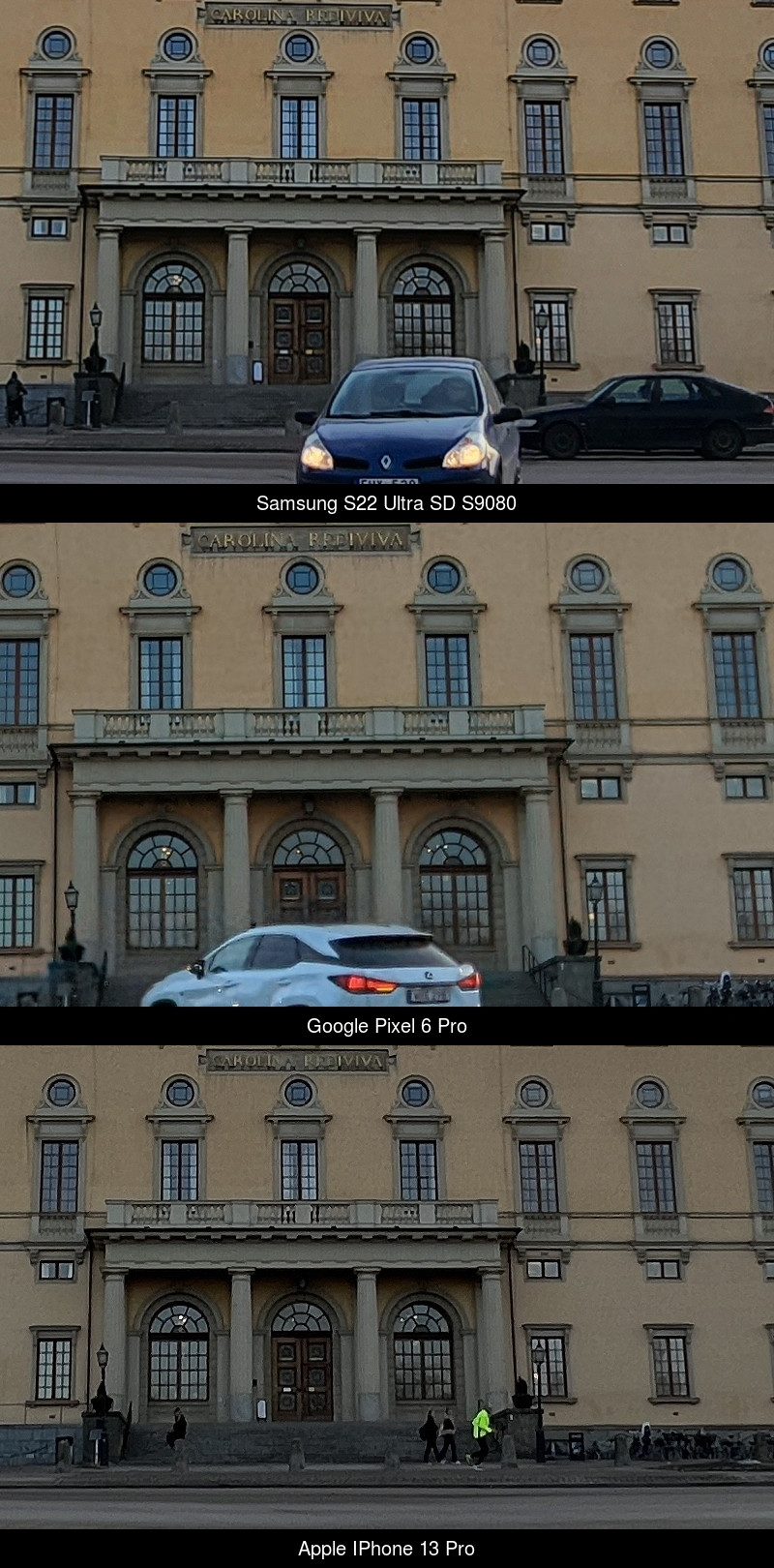 Despite the fact that Samsung has 108mp, Pixel 48mp and iPhone 13 Pro Max "only" 12 megapixels, the technical quality and sharpness is pretty much the same because the optics is setting the limit, not the resolution of the sensor.